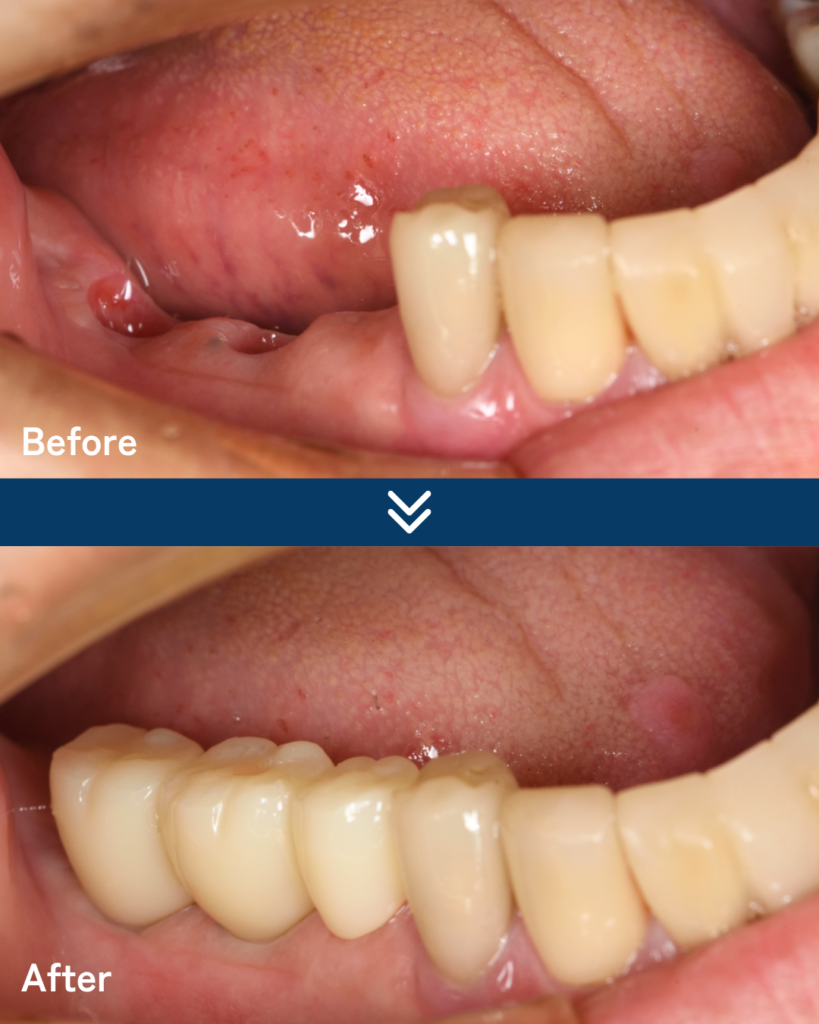 70代の男性患者様の症例です。 右下の奥歯(5・6・7番)を失った状態でご来院されました。 奥歯は食事の際に強い咬合力がかかるため、しっかり...続きを読む